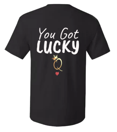Q -Logo Front & Back You Got Lucky T-Shirt - Black